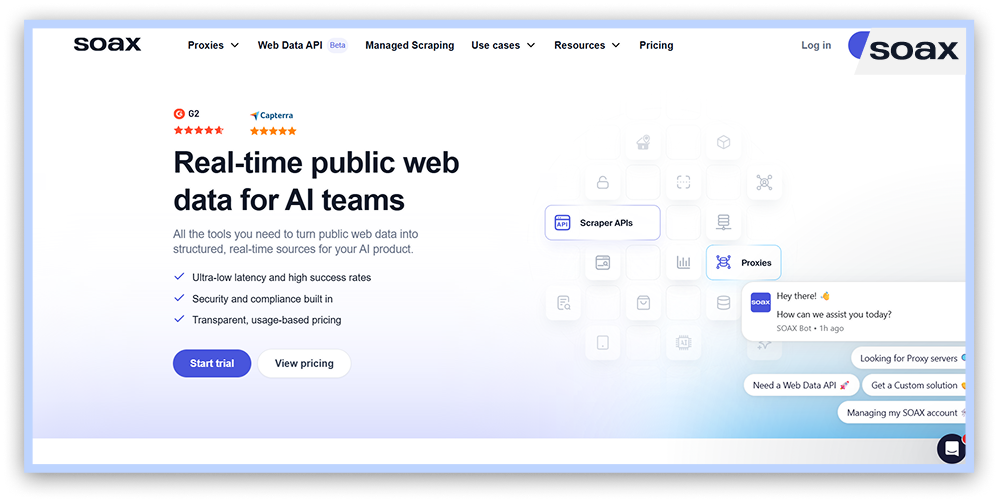 - SOAX: Flexible pricing with pay-as-you-go plans and rotating residential proxies