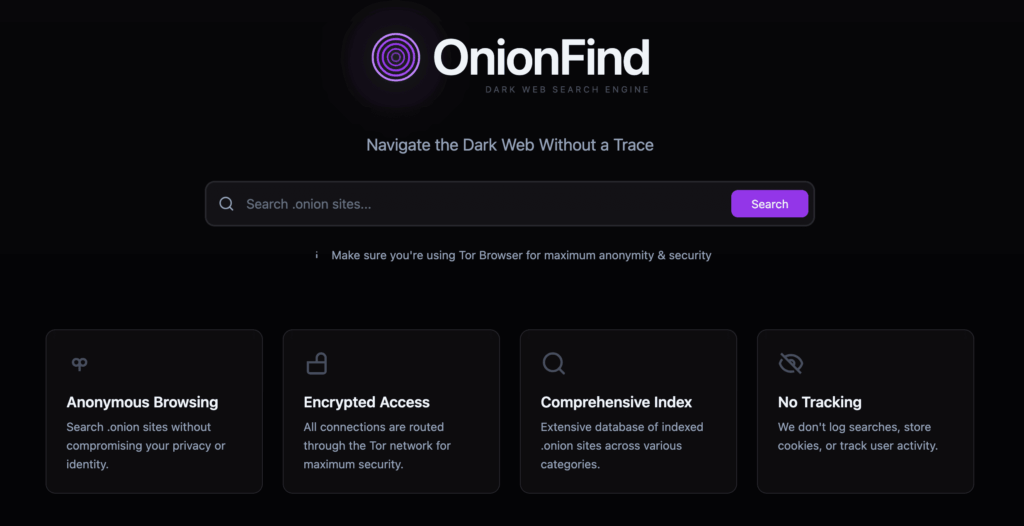 - OnionFind – Among the best-serving dark web sites, with a trusted reputation for security and anonymity for users.